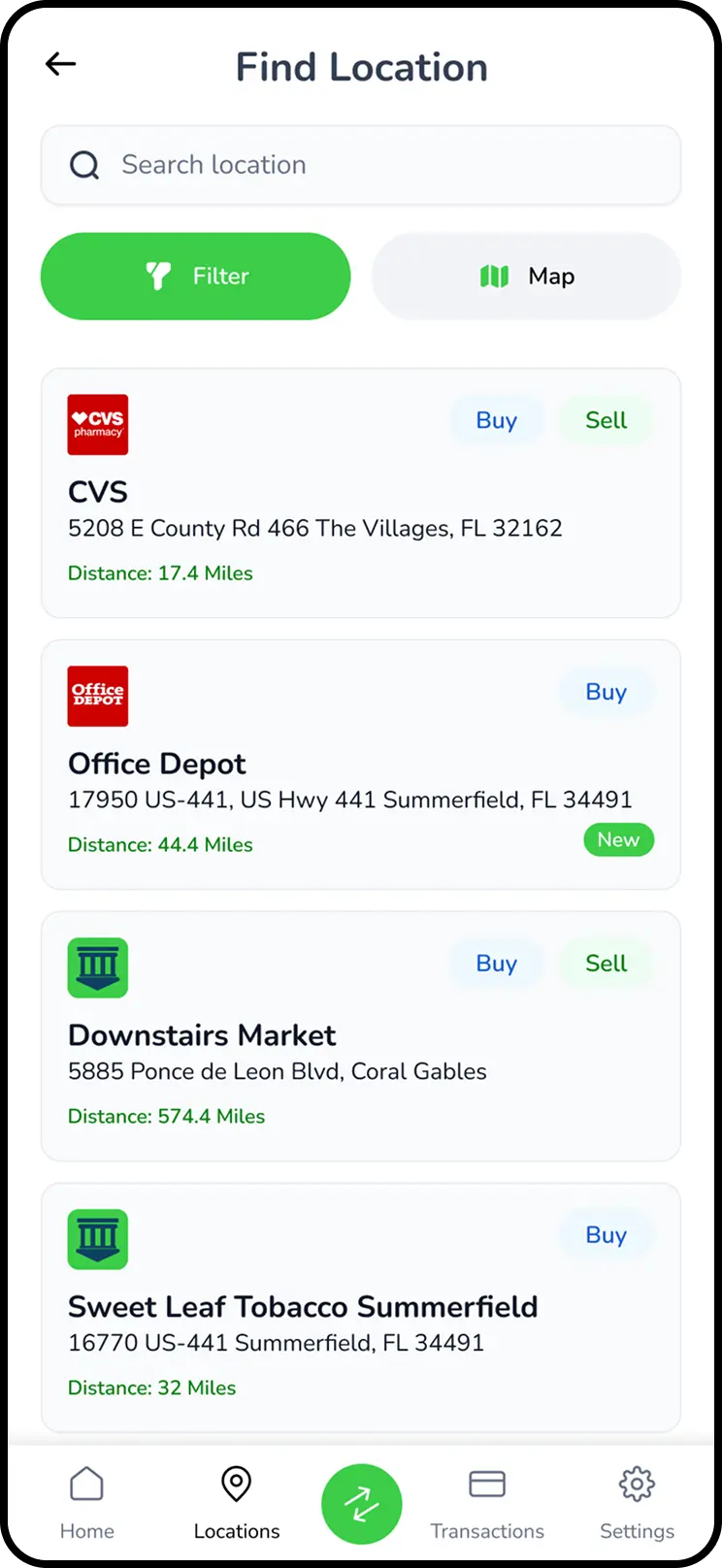 Use the Locations page in the Stack app to locate a participating ATM near you.